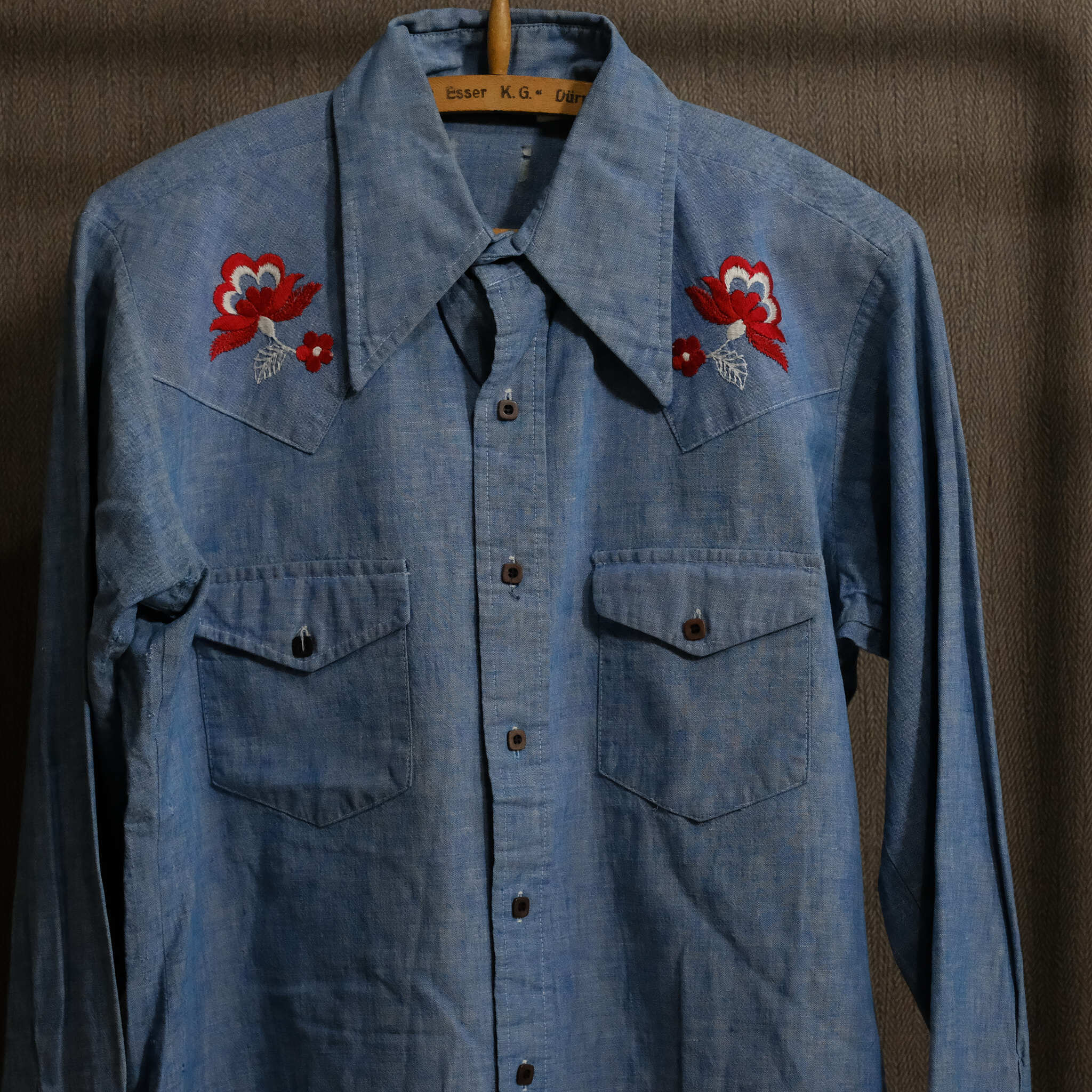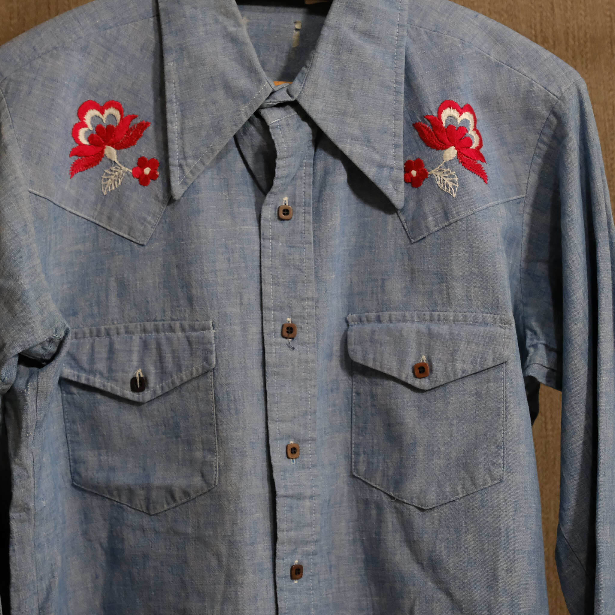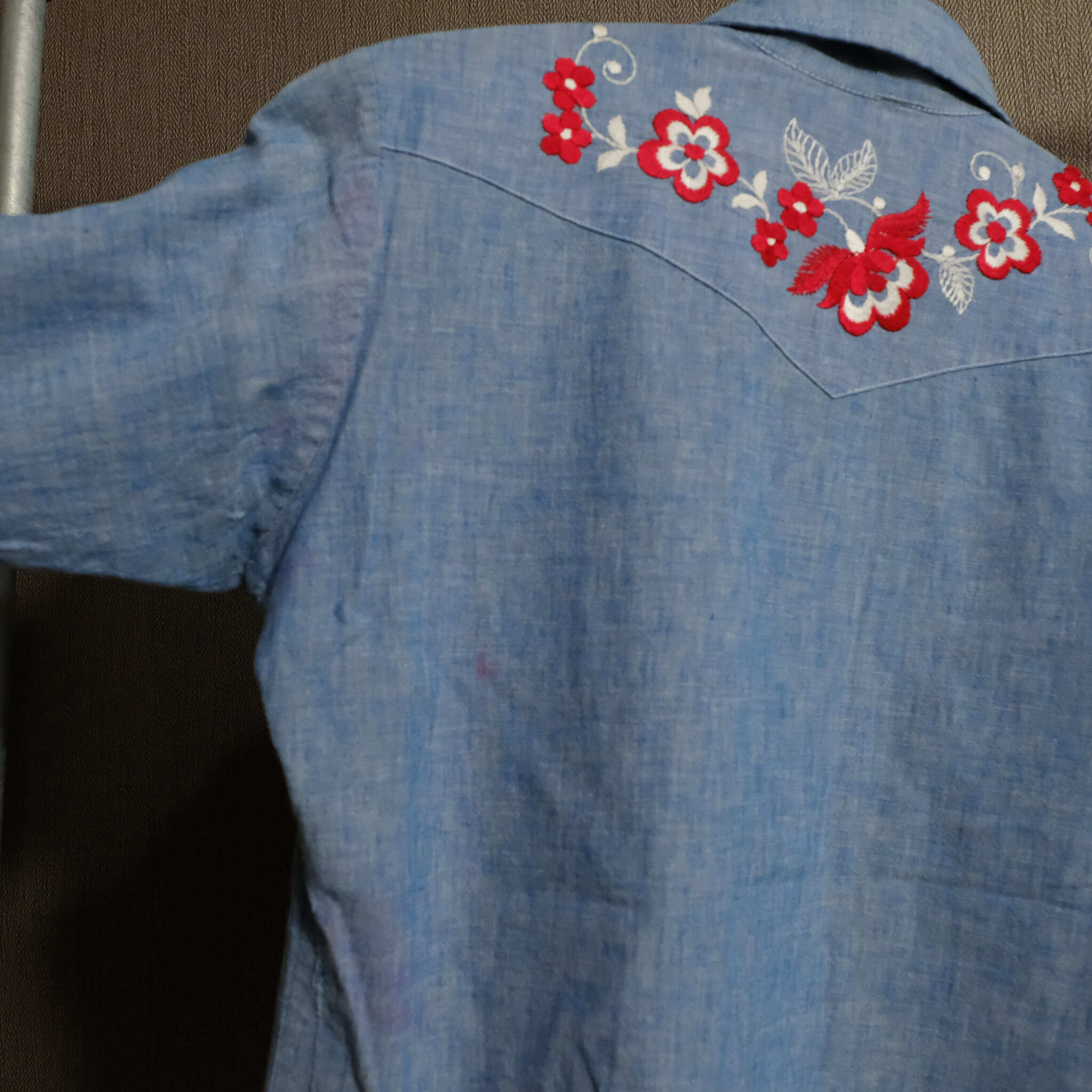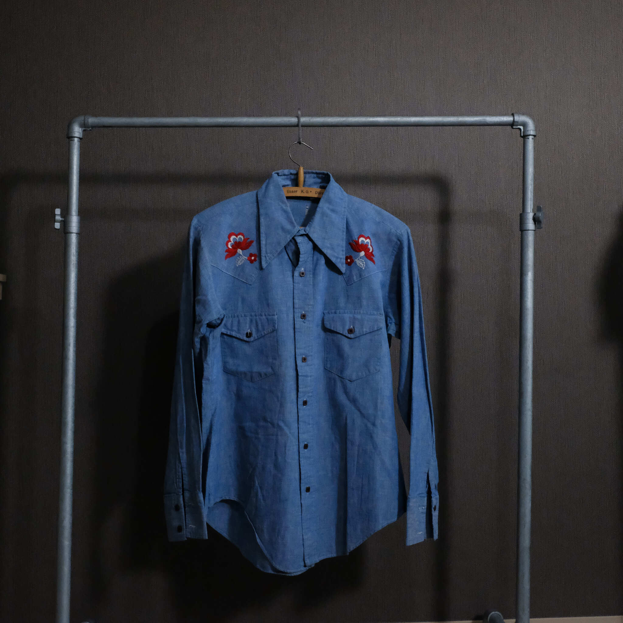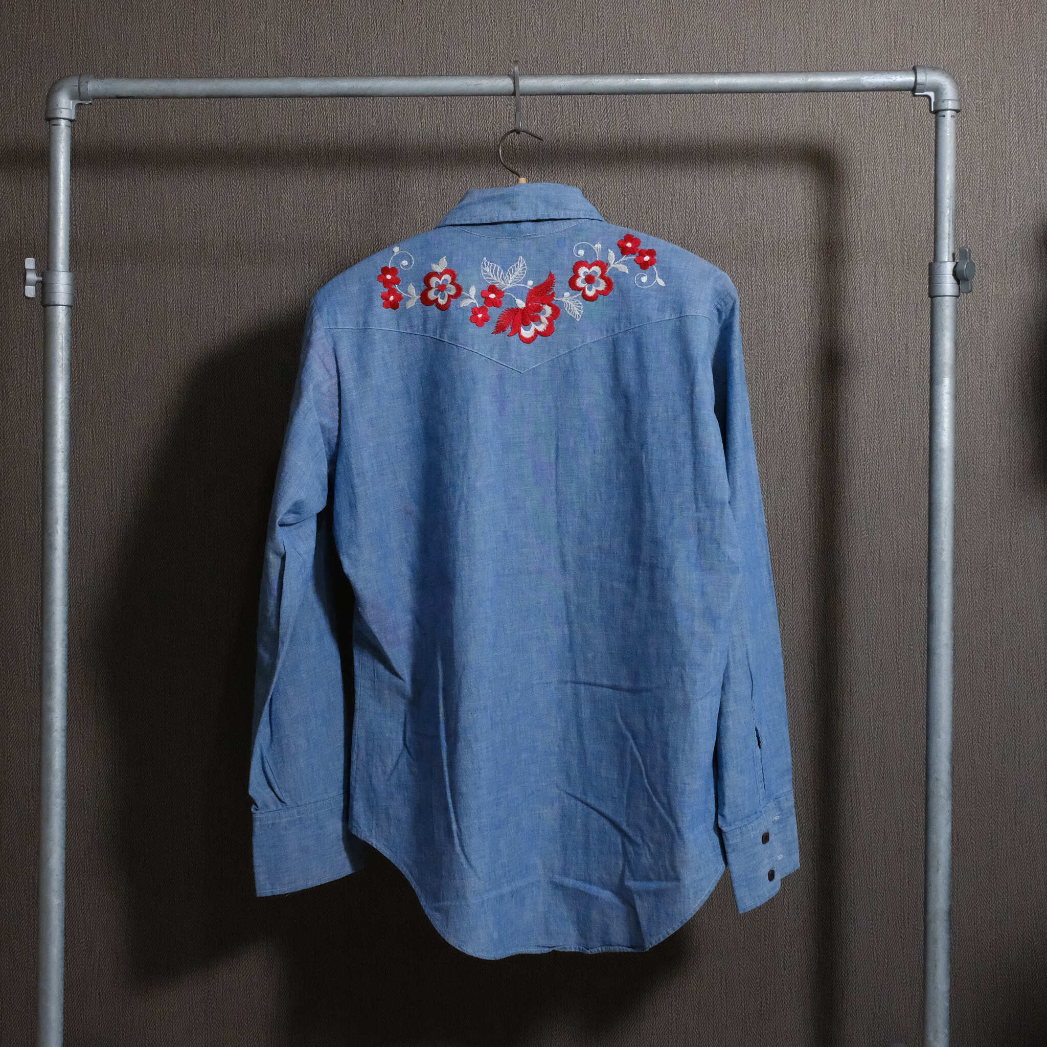 【0377】70’s NO BRAND shirt シャンブレー 刺繍